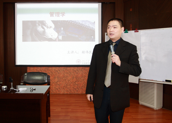 典禮儀式后,北大企業(yè)商學(xué)院研究中心賴偉民教授為集團(tuán)第三期管理干部培訓(xùn)班進(jìn)行為期兩天的《管理學(xué)》授課。賴教授以豐富的教學(xué)經(jīng)驗(yàn)并根據(jù)自身深入的市場(chǎng)研究,通過(guò)與學(xué)員的互動(dòng),利用管理學(xué)的工具對(duì)案例進(jìn)行剖析,為第三期管理干部培訓(xùn)班的學(xué)員上了生動(dòng)的第一堂課。