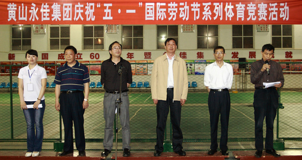 5月6日, 永佳集團(tuán)慶?!拔逡弧眹H勞動(dòng)節(jié)系列體育競賽活動(dòng)在活動(dòng)中心隆重舉行開幕式,集團(tuán)董事長江繼忠、總經(jīng)理唐禮亮,黨委副書記吳云林,工會(huì)主席方日宣等參加開幕式。開幕式由集團(tuán)工會(huì)主席方日宣主持,唐禮亮總經(jīng)理為活動(dòng)開幕式致辭,裁判員和運(yùn)動(dòng)員代表分別在會(huì)上宣誓,江繼忠董事長宣布集團(tuán)慶?!拔逡弧眹H勞動(dòng)節(jié)系列體育競賽活動(dòng)開賽。