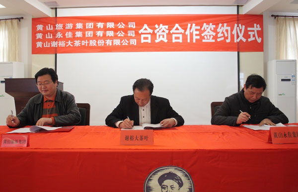3月26日下午,集團與黃山謝裕大茶葉股份有限公司、黃山旅游集團有限公司在黃山謝裕大茶葉股份有限公司會議室舉行了合資合作簽約儀式。集團董事長江繼忠,副董事長、總經理唐禮亮,黃山謝裕大茶葉股份有限公司董事長謝一平,黃山旅游集團有限公司副總裁黃世穩(wěn)等參加了簽約儀式。