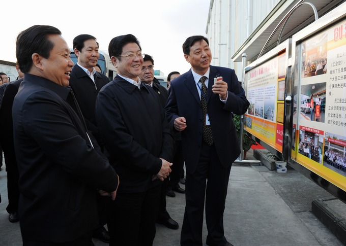 中共中央政治局委員、全國(guó)人大常委會(huì)副委員長(zhǎng)、中華全國(guó)總工會(huì)主席王兆國(guó)11月16日至23日在安徽考察工作,期間來(lái)集團(tuán)考察。王兆國(guó)在參觀集團(tuán)骨干企業(yè)永新股份時(shí),看到企業(yè)先后獲得“全國(guó)創(chuàng)建和諧勞動(dòng)關(guān)系模范企業(yè)”、“全國(guó)五一勞動(dòng)獎(jiǎng)狀”等榮譽(yù)稱號(hào),稱贊企業(yè)做得不錯(cuò),獲得了不少的榮譽(yù)。當(dāng)王兆國(guó)主席聽了集團(tuán)董事長(zhǎng)江繼忠對(duì)企業(yè)如何為員工創(chuàng)造前途,如何為員工提供成長(zhǎng)平臺(tái)的介紹時(shí),他高興地指出:人民群眾是真正的英雄,勞動(dòng)創(chuàng)造世界。一個(gè)企業(yè)不依靠職工怎么發(fā)展?只有依靠包括廣大職工在內(nèi)的全體人民的拼搏奮斗和不懈努力,只有靠廣大勞動(dòng)者的勤奮勞動(dòng)、誠(chéng)實(shí)勞動(dòng)、創(chuàng)新勞動(dòng),才能創(chuàng)造出更多更好的物質(zhì)財(cái)富和精神財(cái)富。要認(rèn)真貫徹落實(shí)中央相關(guān)會(huì)議精神,堅(jiān)持全心全意依靠工人階級(jí)的根本方針,積極構(gòu)建和諧勞動(dòng)關(guān)系,切實(shí)維護(hù)職工權(quán)益和社會(huì)穩(wěn)定,面對(duì)面心貼心實(shí)打?qū)嵉亻_展職工群眾工作,引導(dǎo)職工為推動(dòng)經(jīng)濟(jì)平穩(wěn)較快發(fā)展作貢獻(xiàn),實(shí)現(xiàn)共建共享共贏。