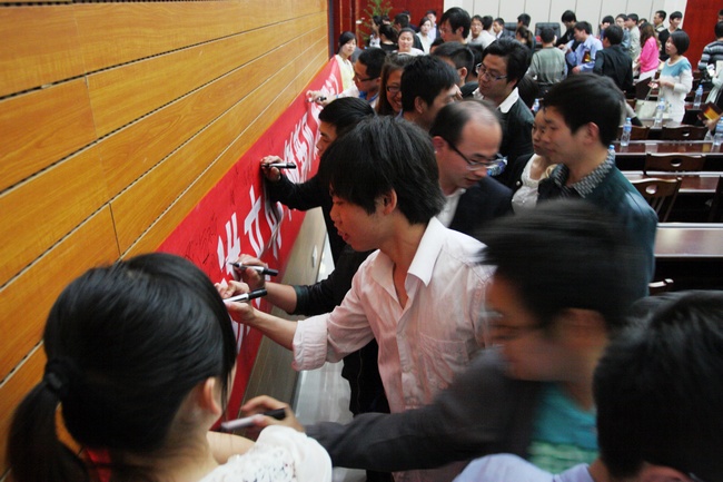 全體與會(huì)人員就“講文明,樹新風(fēng),做文明永佳人”進(jìn)行了宣誓,并在印有該字樣的條幅上紛紛簽名。
