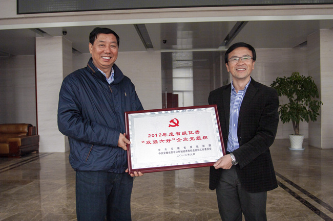 10月29日上午,黃山市委組織部副部長(zhǎng)、市非公經(jīng)濟(jì)和社會(huì)組織工委書記王震新、市非公經(jīng)濟(jì)和社會(huì)組織工委副書記柯伯發(fā)一行蒞臨我公司,為永佳集團(tuán)黨委榮獲省委組織部、省委非公經(jīng)濟(jì)和社會(huì)組織工委2012年度省級(jí)優(yōu)秀“雙強(qiáng)六好”企業(yè)黨組織頒發(fā)獎(jiǎng)牌。