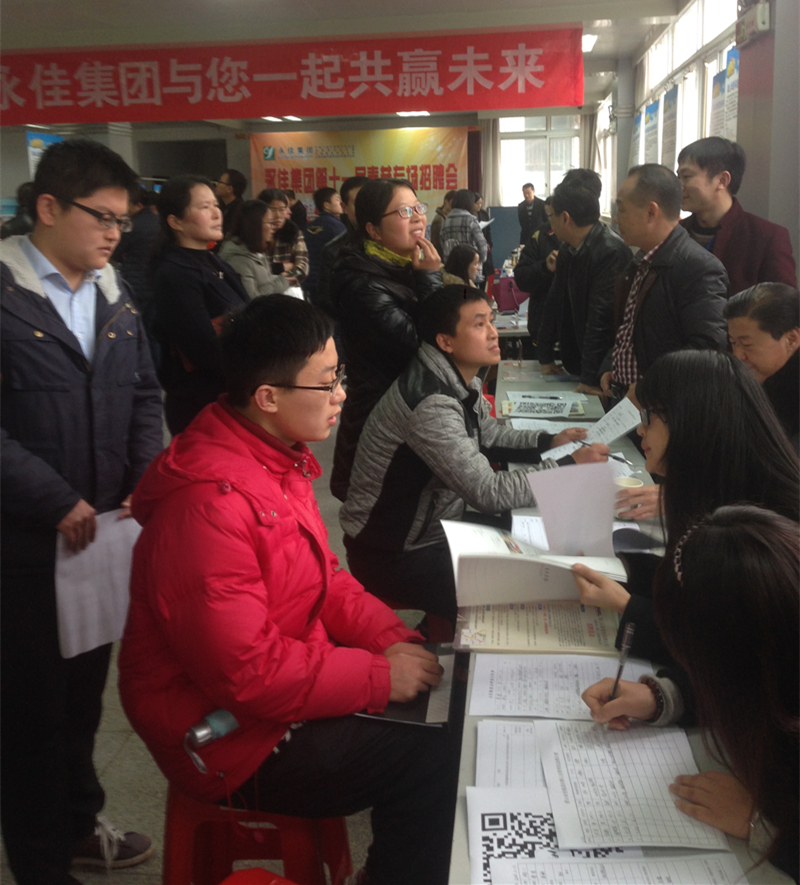大年初五,新春佳節(jié)氣氛正濃,永佳集團(tuán)第十一屆春節(jié)專(zhuān)場(chǎng)招聘會(huì)暨黃山市新年首場(chǎng)招聘會(huì)在市人才就業(yè)服務(wù)局中心大廳舉行。集團(tuán)22家成員企業(yè)參加了招聘活動(dòng),招聘崗位涉及銷(xiāo)售、技術(shù)、操作、行政等200多個(gè),來(lái)自全市內(nèi)外約2000名各類(lèi)人才入場(chǎng)求職,并投遞簡(jiǎn)歷。