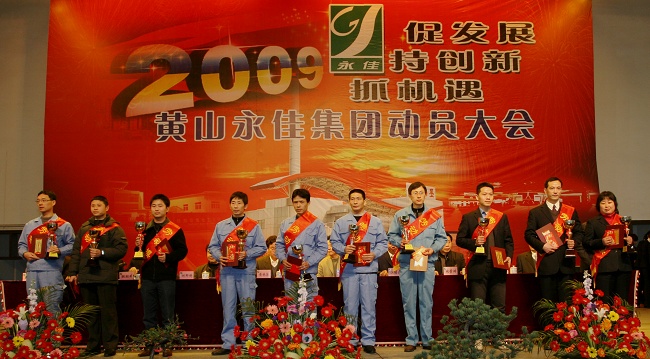 集團董事長江繼忠代表集團董事會在會上作了講話,并強調(diào):今天非常榮幸邀請到黃林沐副市長、胡學凡副書記親臨現(xiàn)場作會議指導,充分體現(xiàn)了市委市政府對永佳的關心、重視和支持,也體現(xiàn)了市委市政府對永佳集團加快發(fā)展所寄予的厚望。2009年,集團的發(fā)展將面臨嚴峻的困難和挑戰(zhàn),但我們必須要保證企業(yè)的穩(wěn)步發(fā)展,這是市委市政府對我們的殷切期望,也是我們突出重圍,實現(xiàn)更高、更快、更強的基礎。并要求大家加強團隊、品牌和企業(yè)文化建設,弘揚勞模精神,構建可持續(xù)發(fā)展的人才培養(yǎng)模式,降低生產(chǎn)成本,創(chuàng)新經(jīng)營,實現(xiàn)集團持續(xù)穩(wěn)健發(fā)展。
